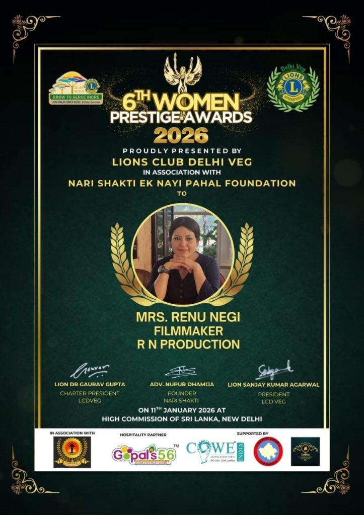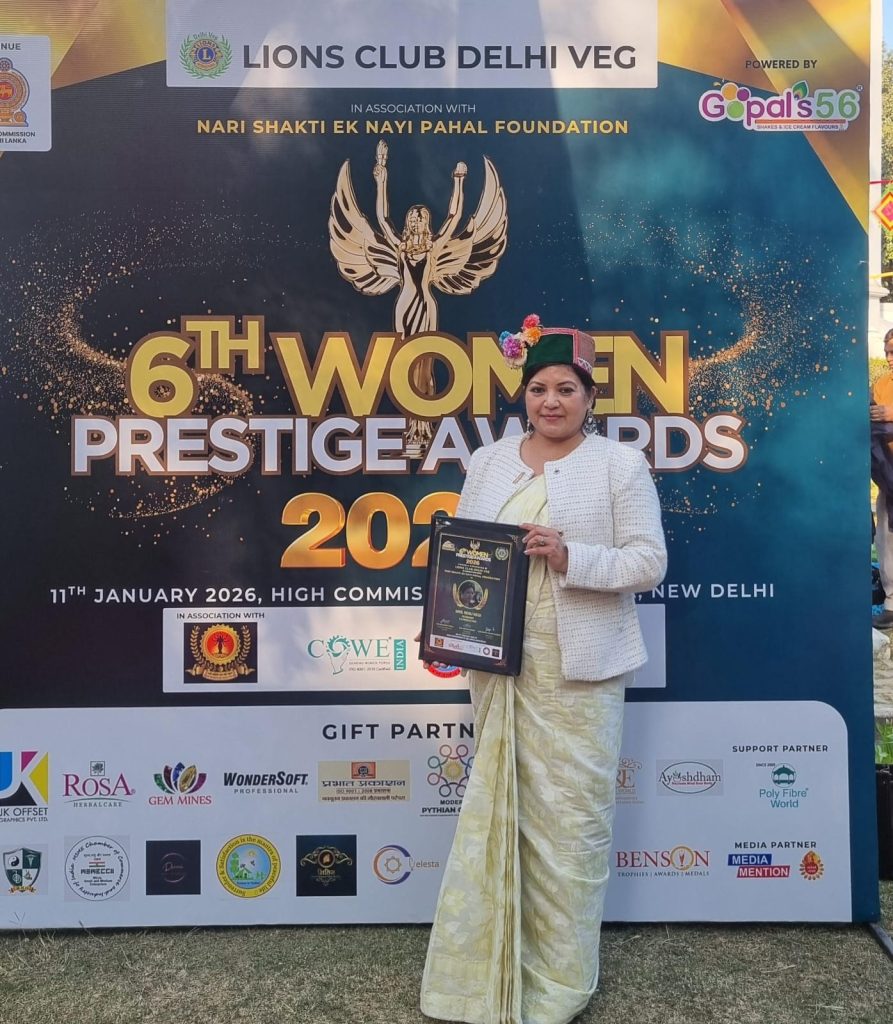 दिल्ली के चाणक्यपुरी स्थित श्रीलंका उच्चायोग में आयोजित महिला प्रतिष्ठा पुरस्कार 2026 में प्रदेश के जनजातीय ज़िला किन्नौर की फिल्ममेकर रेणु नेगी सम्मानित